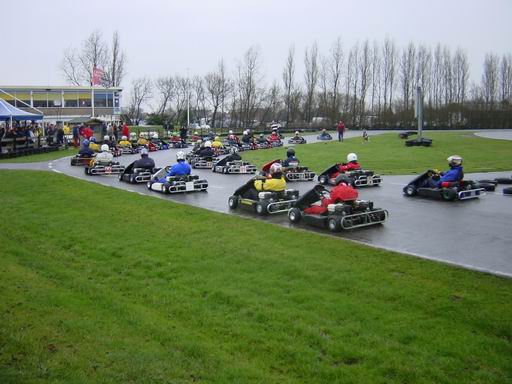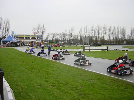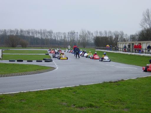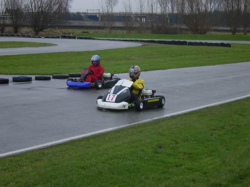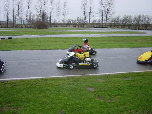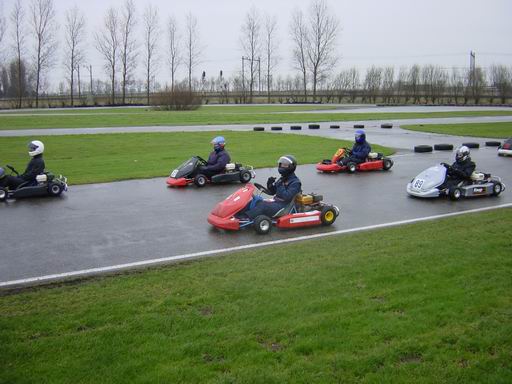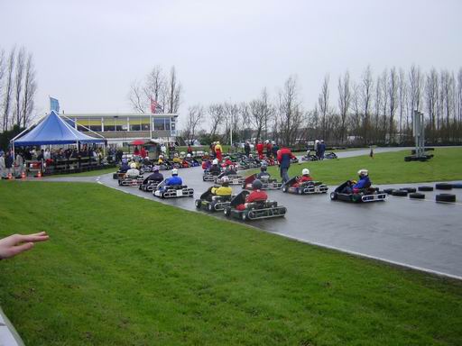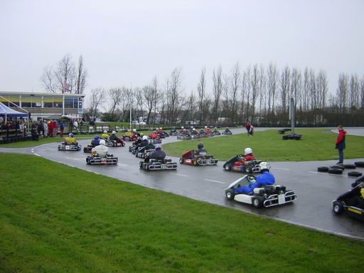 In de morgen was het nog wat droog, maar al snel ging het regenen. Deze race deden naast Dennis en Stefan ook Hans en Ton mee. In de morgen was eerst de vrije training waar we nieuwe Vega banden monteerden. Heel erg goed ging het niet want de kart gleed alle kanten op. Bij binnenkomst was de linker achterband helemaal verbrand....met een Vega heb ik dat nog nooit gezien....misschien een maandag morgen band van Vega. Voor het tijdrijden waren we wat laat en dat was pech want het begon te regenen waardoor we geen goede tijd konden neerzetten wat resulteerde in een plaats achter aan de grid. Stefan deed net als de vorige race weer de start en maakte veel plekken goed. Na Stefan ging Dennis rijden en voordat Ton ging rijden lag het CRG team op een 12 plek. Het begon al harder te regen en toen Ton de baan op ging kwam er echt veel water naar beneden en dat vond Ton minder leuk. Na Ton ging Hans rijden en die zorgde voor veel spektakel al waren de tijden daardoor wat minder waardoor er toch wel een paar plekken werden verloren. Uiteindelijk eindigde het CRG team op een 15e plek. Minder goed dan de vorige keer, maar met 2 rijders die nog nooit met een prokart in de regen hebben gereden is dat heel goed en zeker gezien de omstandigheden. De volgende race is op 16 februari. De race werd overigens gewonnen door Mavegas die aan het einde van de race voor de finish even bleven wachten totdat er 3 uur voorbij waren. Dit deden zij omdat anders met een rijder langer dan 1 uur zouden rijden en dat is natuurlijk super team tactiek. Op een 2e plek eindigde De toekomst en 3e indoor karting z .