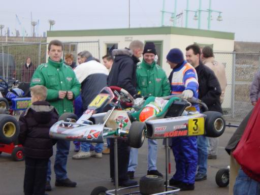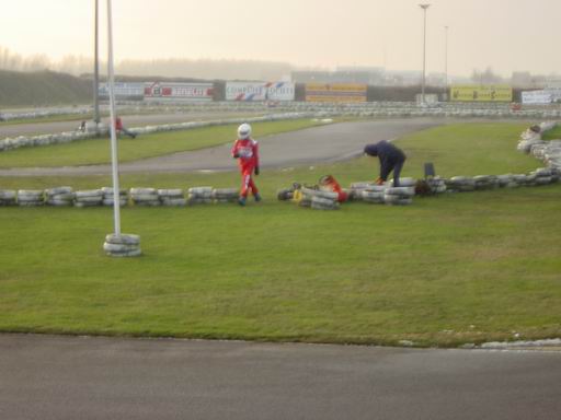 | Het was erg koud maar het zonnetje scheen lekker en er kon met slicks worden gereden. Zelf kwam ik ongeveer 30 min voor het einde van de race dus de start en een groot gedeelte heb ik gemist. Allard Kalff reed samen met Jeroen Bleekemolen in een Tonykart/Trulli kart met de nieuwe Vortex motor de Rok. Veel vaar zat er niet in bij Allard want die had na de kerst wat extra pondjes mee te nemen. Donny Crevels reed samen met Richard Blanken en lagen tot vlak voor het einde aan kop met een schakelkart maar doordat Richard geen brandstof meer had en een extra pitstop moest maken koste het de totaal overwinning. Eerste werd Mike Koene samen met Ronald Loenen met een 100cc watergekoelde Italsystem. Tweede werden werden Donny en Richard met een 125cc schakel en derde werd Michel Schuler met zijn team maatje, maar wie dat was weet ik niet.