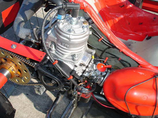 Er wordt gebruik gemaakt van een 125cc motor zonder powervalve met koppeling en elecktrische starter. De motor moet voldoen aan de regels gesteld door de CIK/FIA. |